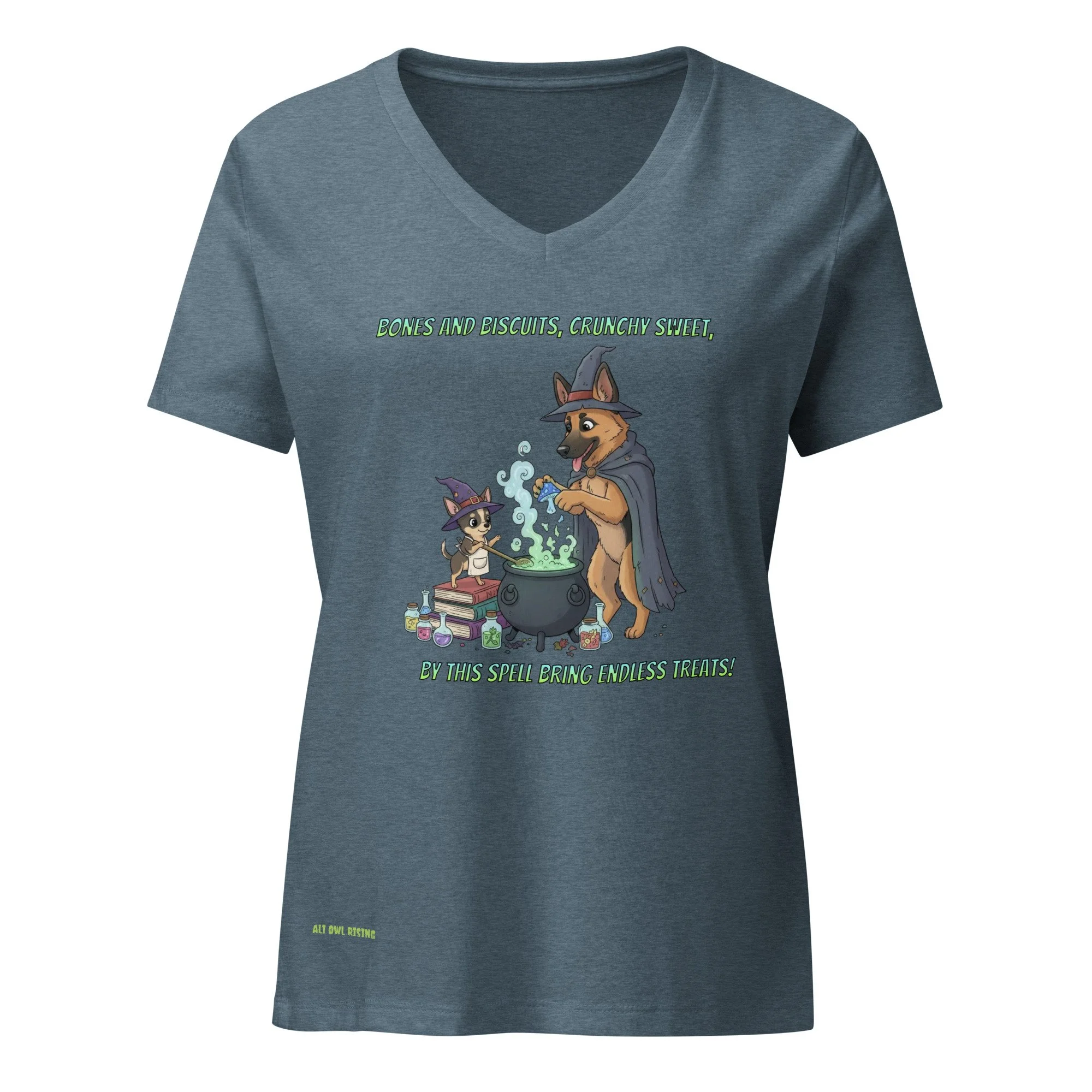 Bones and Biscuits dog spell Vneck Tee